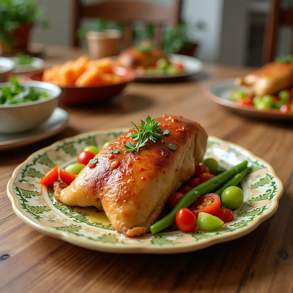 Lomo de cerdo asado con farofa de cebolla y tocino y betabeles cocidos